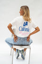 Make every day effortlessly cool with the White L.A T-shirt. Featuring a classic round neckline, short sleeves, and bold pink and blue “L.A” logos on the front and back, it’s a standout staple that pairs perfectly with anything in your wardrobe.